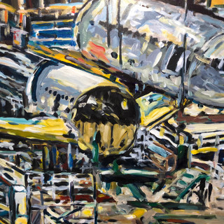 A special art exhibit at the Future of Flight Gallery featured the artwork of Jason Otto. He has been employed at The Boeing Company’s Everett factory for 25 years as a software engineer. Otto loves the energy of the factory and captures the vitality in his work. He states, “For me, it’s not just recreating a scene on canvas, it’s about expressing an energy and mood through design and discovery.” Above are samples of his work – beautiful depictions of the Boeing factory at work!
